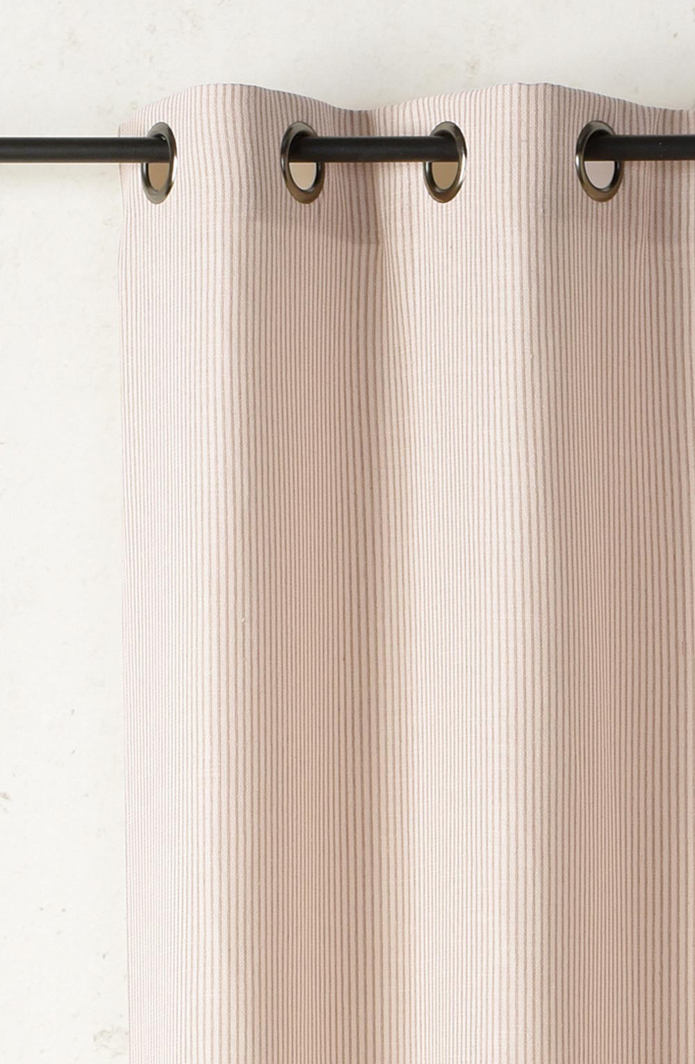 La finition du haut du rideau comprend 8 œillets ronds couleur canon de fusil de diamètre 40mm ainsi qu'une bande de renfort.