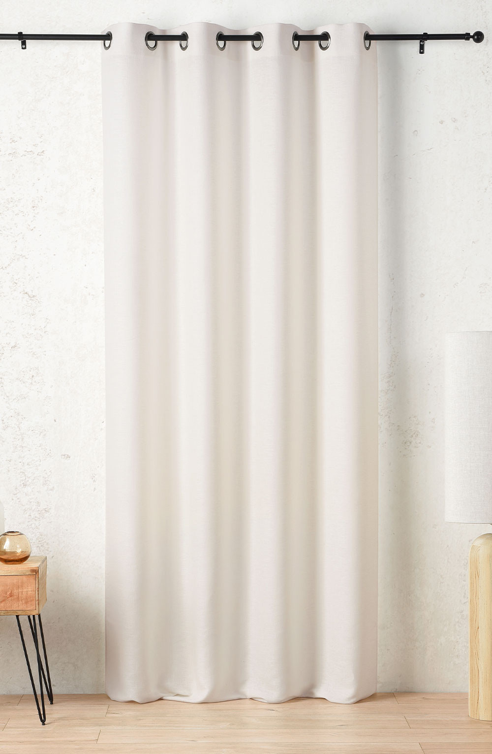 La finition du haut du rideau comprend 8 œillets ronds de diamètre 40mm et de couleur canon de fusil ainsi qu'une bande de renfort.
