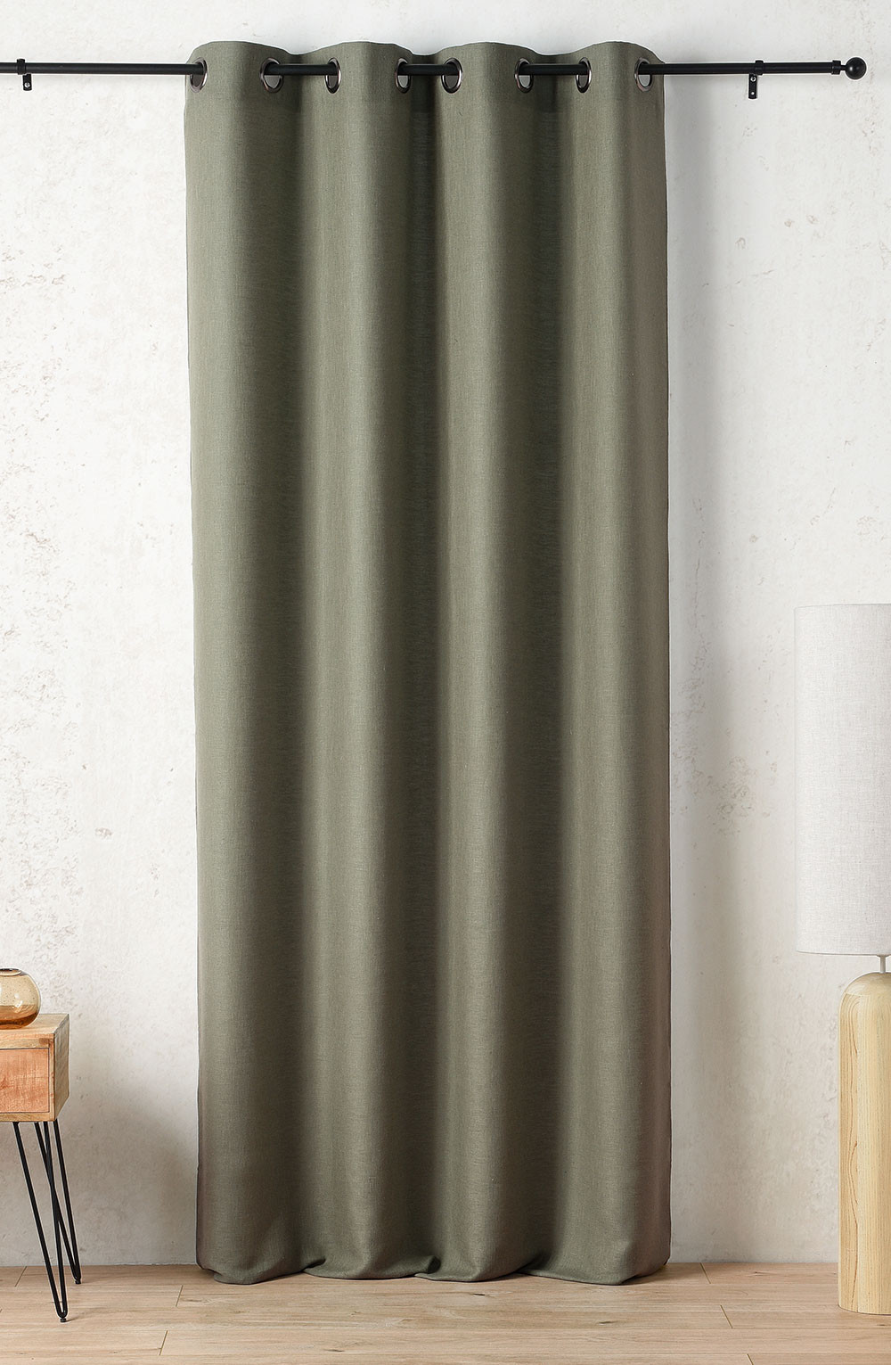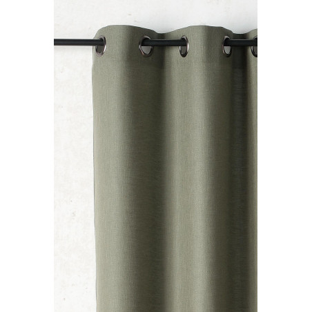 La finition du haut du rideau comprend 8 œillets ronds de diamètre 40mm et de couleur canon de fusil ainsi qu'une bande de renfort.