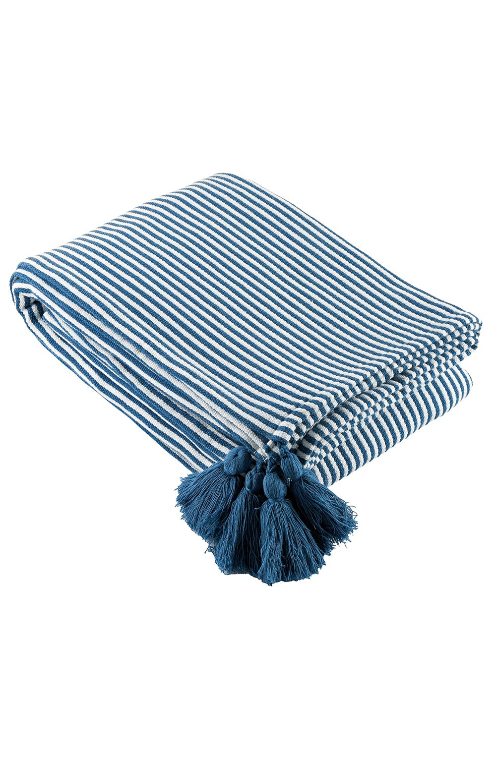 Plaid rayé au look naturel, qui rappelle la décoration des villas greques. Avec des coloris estivaux, et une fintion fantaisie "Pompon" inspiré des foutas de plage, il apportera un esprit détente et vacances à votre déco.