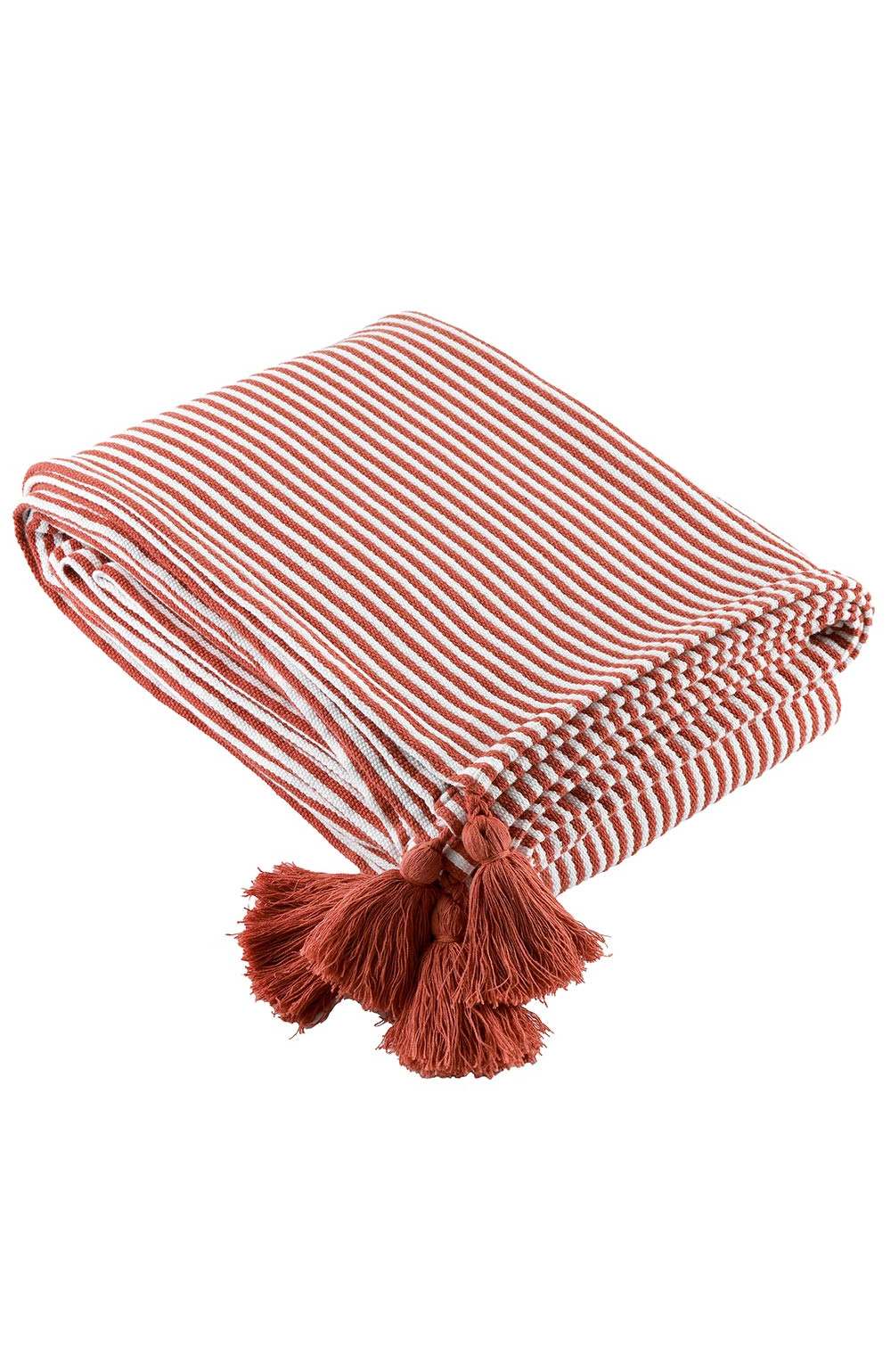 Plaid rayé au look naturel, qui rappelle la décoration des villas greques. Avec des coloris estivaux, et une fintion fantaisie "Pompon" inspiré des foutas de plage, il apportera un esprit détente et vacances à votre déco.