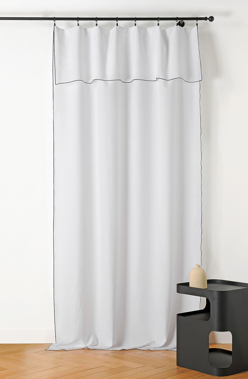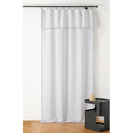 Voilage finition bourdon noir. Le système d'attaches n'est pas fourni avec le rideau. Vous pourrez adapter votre hauteur en faisant un rabat de votre convenance. Ce rideau préservera votre intimité et saura s'adapter à tous les types d'ambiances grâce à un grand panel de coloris. En polyester et lin, le toucher est souple et agréable.