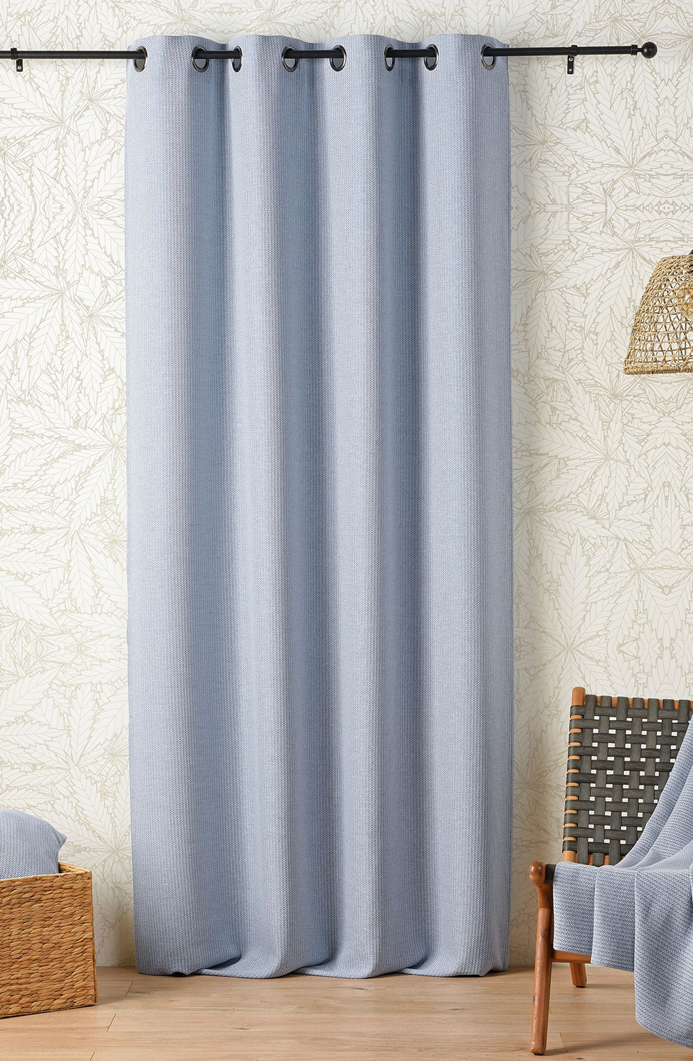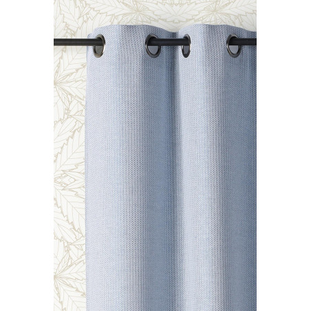 La finition du haut du rideau comprend 8 œillets ronds couleur canon de fusil de diamètre 40mm ainsi qu'une bande de renfort.