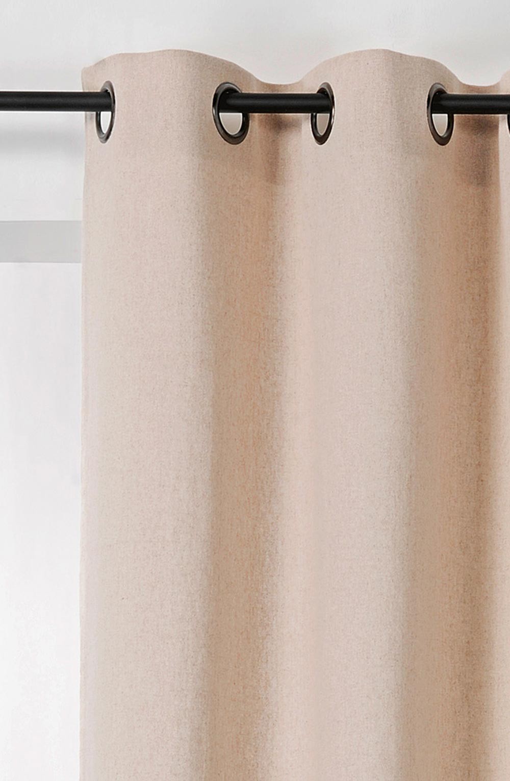 Rideau à 8 œillets ronds canon de fusil avec bande de renfort au niveau des œillets. Rideau tissé et teint dans le respect des normes françaises.