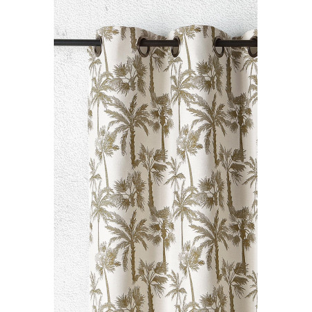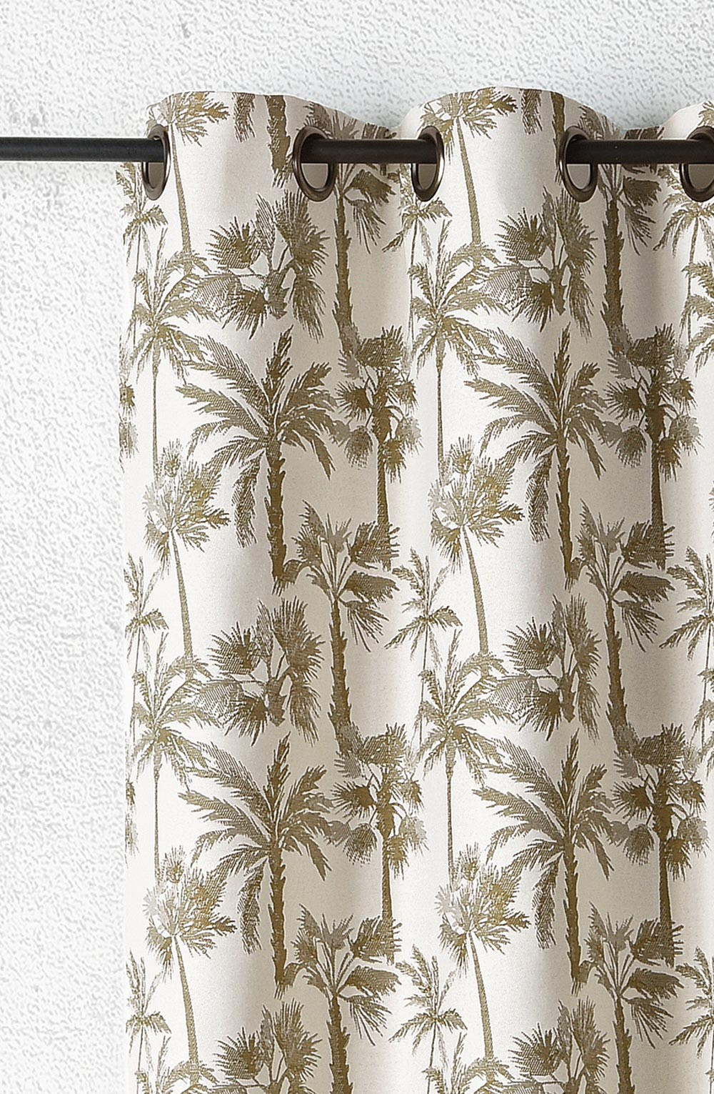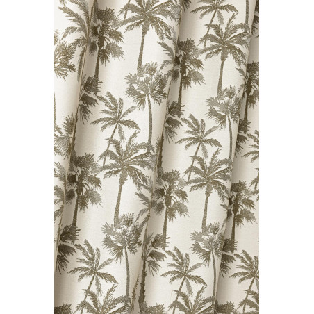 Tissé dans un mélange de coton et de polyester, ce rideau séduit par sa douceur. Son tissage en relief met subtilement en scène le motif de palmiers : les feuilles semblent prendre vie, créant un jeu de textures élégant qui enrichit la pièce de caractère et de profondeur.