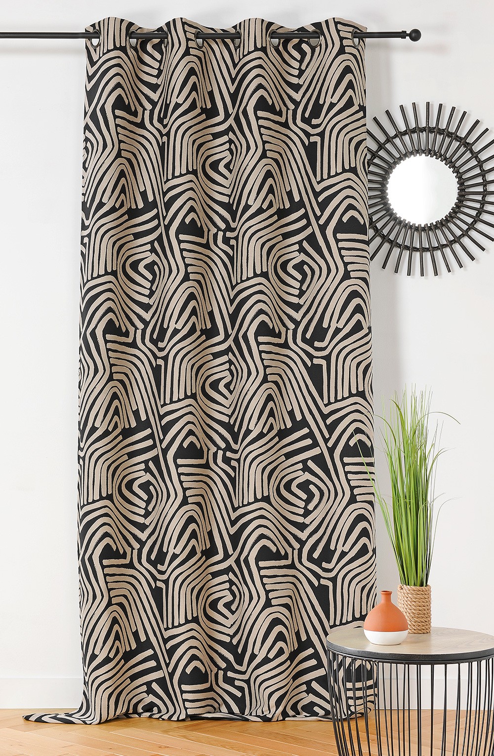 Rideau à 8 œillets ronds canon de fusil avec bande de renfort au niveau des œillets. Rideau tissé et teint dans le respect des normes françaises.