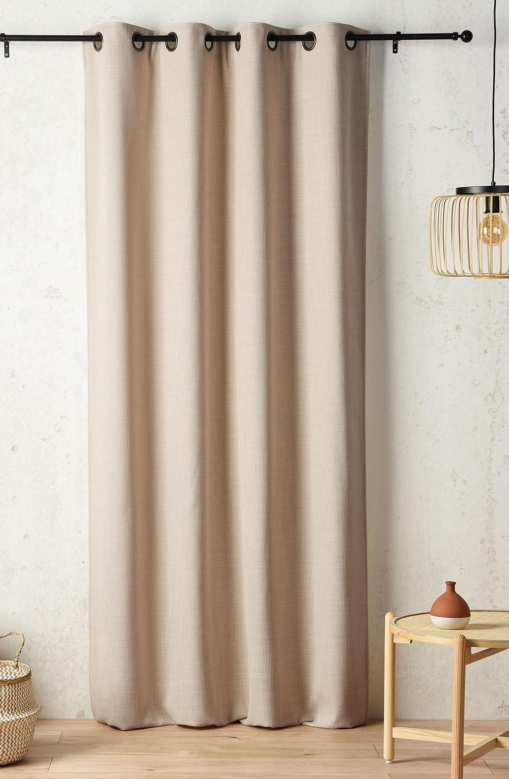 Rideau à 8 œillets ronds canon de fusil avec bande de renfort au niveau des œillets.