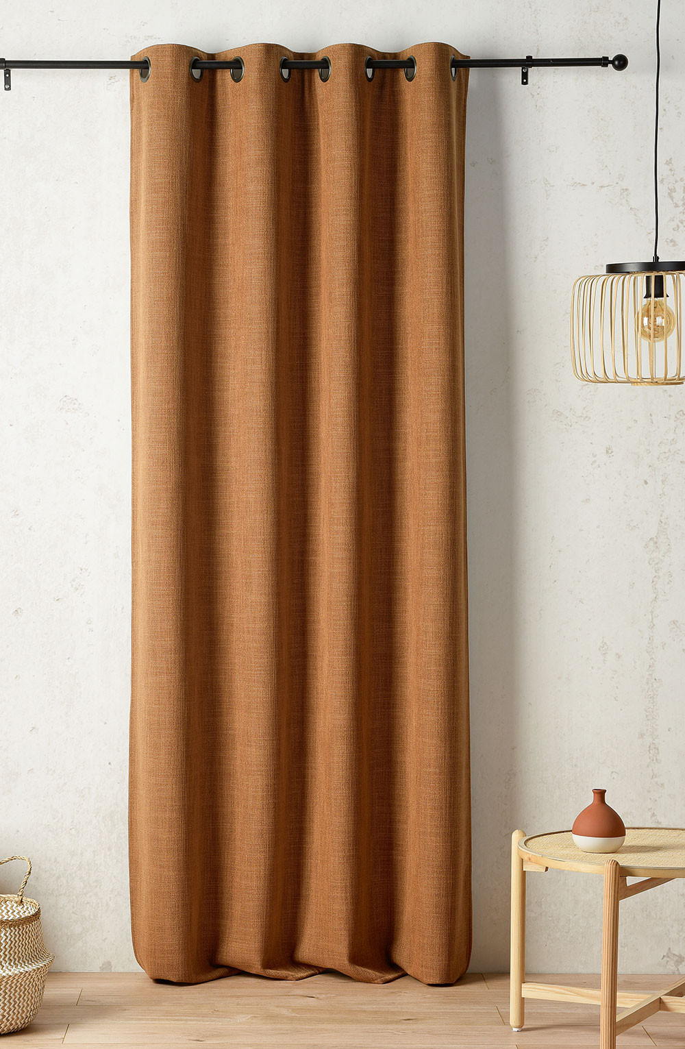 Rideau à 8 œillets ronds canon de fusil avec bande de renfort au niveau des œillets.