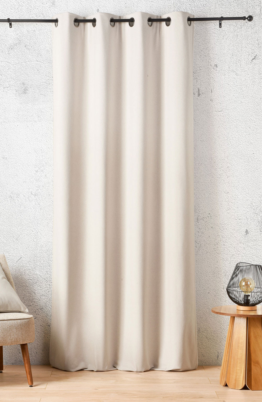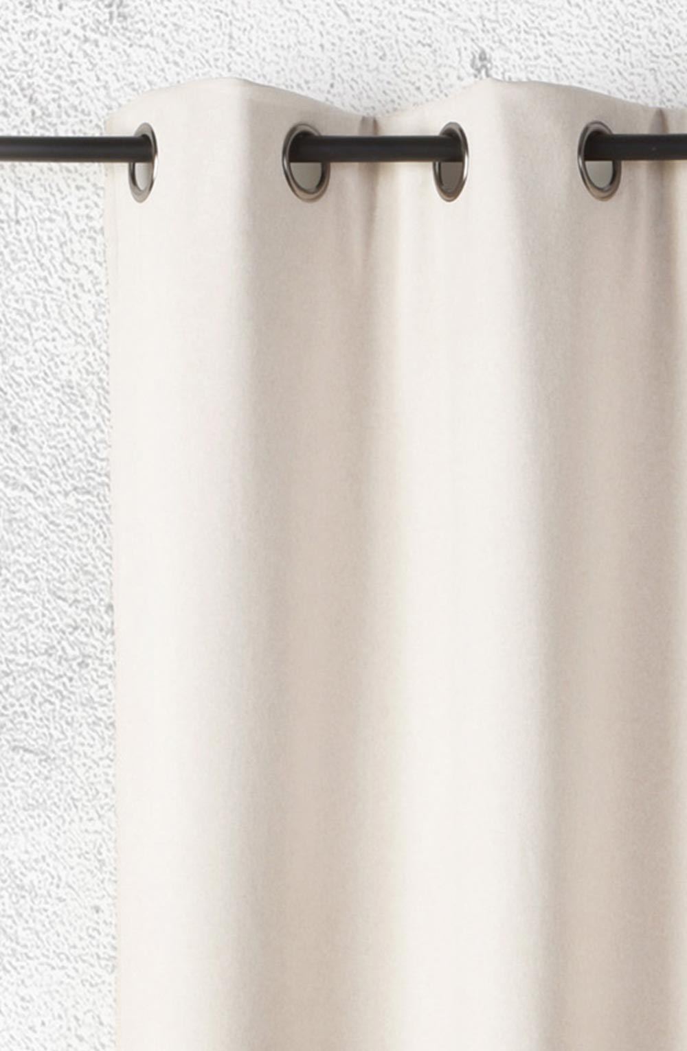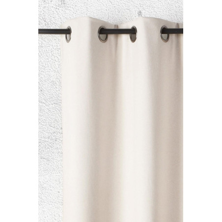 La finition du haut du rideau comprend 8 œillets ronds couleur canon de fusil de diamètre 40mm ainsi qu'une bande de renfort.