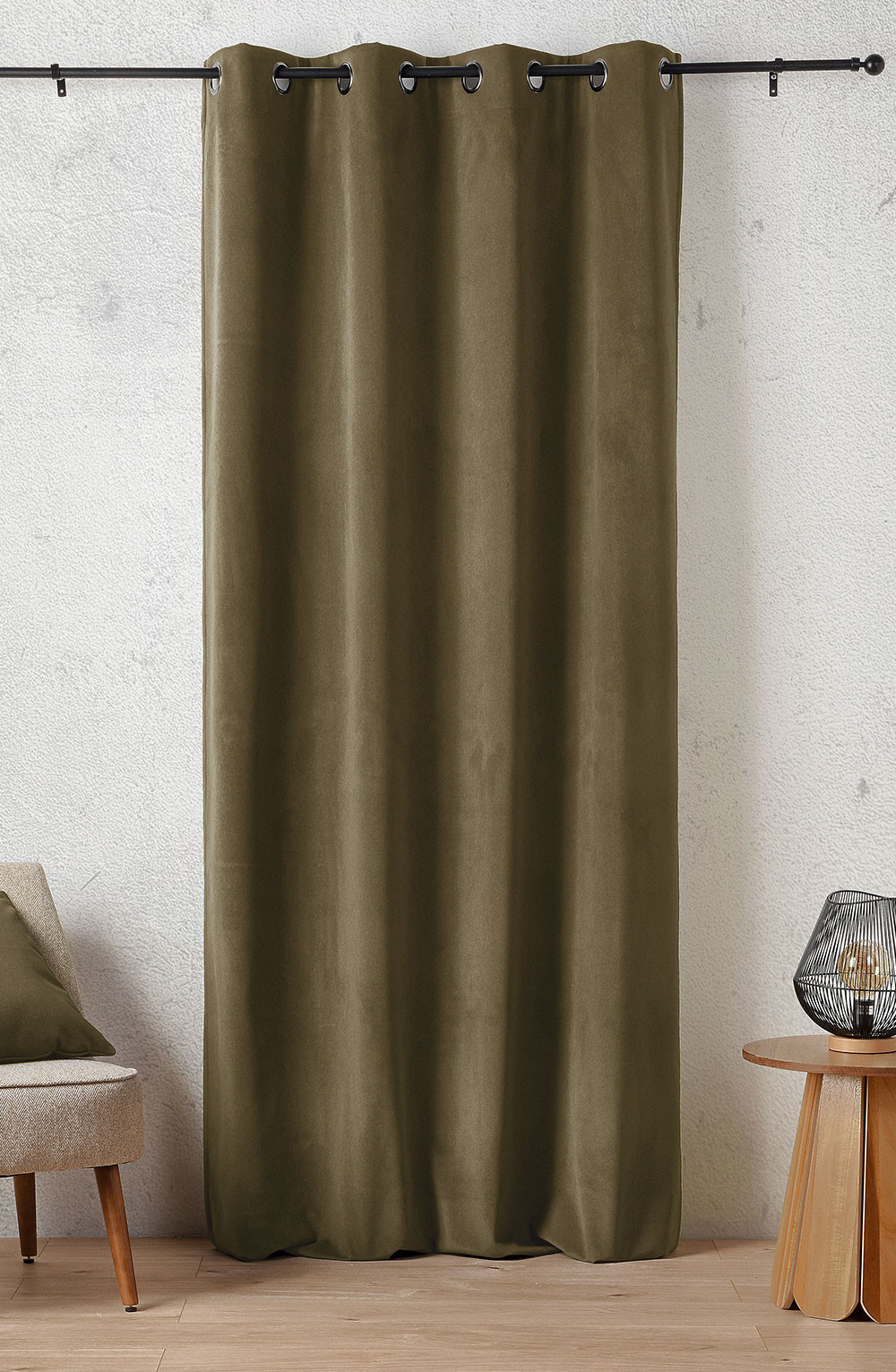 La douceur d'un effet peau de pèche pour ce rideau velours aux coloris profonds et élégants. Son tombé, à la fois lourd et épais, lui confère un chic et une présence impactante. Doublé d'une couche polaire, il isolera un intérieur des variations de températures tout en faisant le noir dans une pièce.