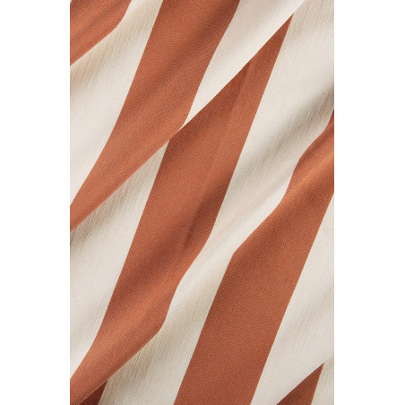 Rayure bicolore aux teintes pop, ce tissu apportera énergie et joie à votre intérieur. L'armure satin permet de conserver la vivacité des couleurs, ainsi que l'aspect flammé et naturel de la rayure écru. Ce tissu est composé en partie de fils upcyclés.