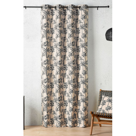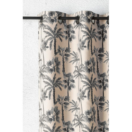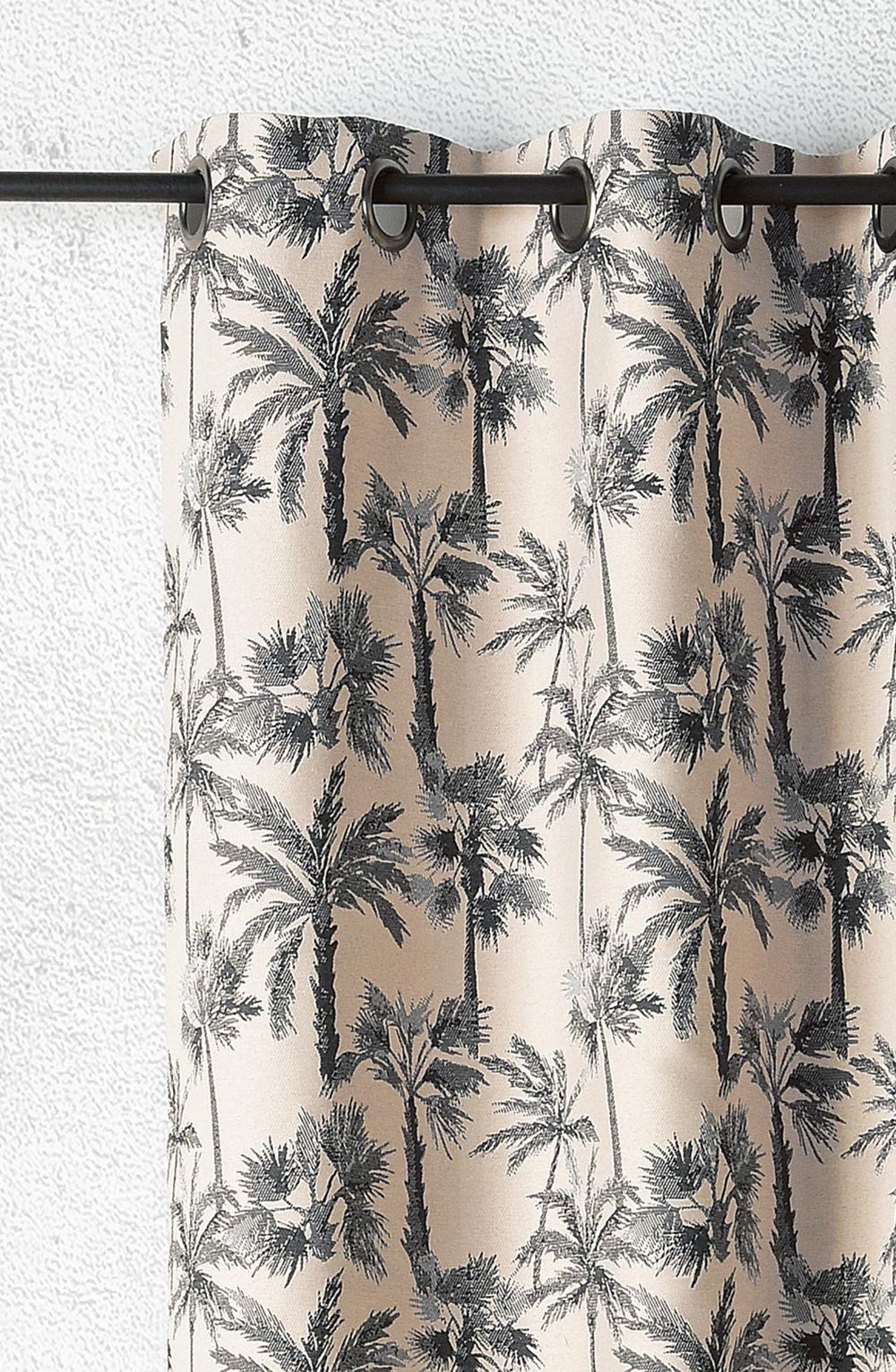 Tissé dans un mélange de coton et de polyester, ce rideau séduit par sa douceur. Son tissage en relief met subtilement en scène le motif de palmiers : les feuilles semblent prendre vie, créant un jeu de textures élégant qui enrichit la pièce de caractère et de profondeur.