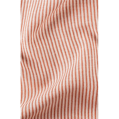 Une véritable ambiance estivale avec cette rayure fine aux teintes pop et vitaminées, qui fait penser aux rayures plage. L'armure double face permet d'avoir deux côtés identiques et donne du corps au tissu, bien que tissé avec des fils fins.