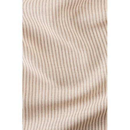 Une véritable ambiance estivale avec cette rayure fine aux teintes pop et vitaminées, qui fait penser aux rayures plage. L'armure double face permet d'avoir deux côtés identiques et donne du corps au tissu, bien que tissé avec des fils fins.