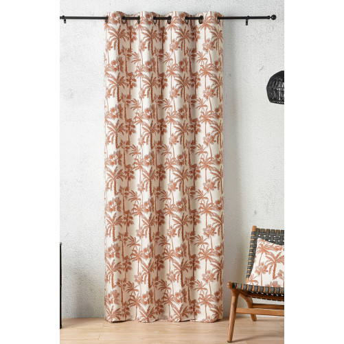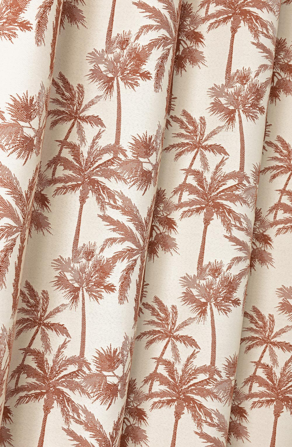 Tissé dans un mélange de coton et de polyester, ce rideau séduit par sa douceur. Son tissage en relief met subtilement en scène le motif de palmiers : les feuilles semblent prendre vie, créant un jeu de textures élégant qui enrichit la pièce de caractère et de profondeur.